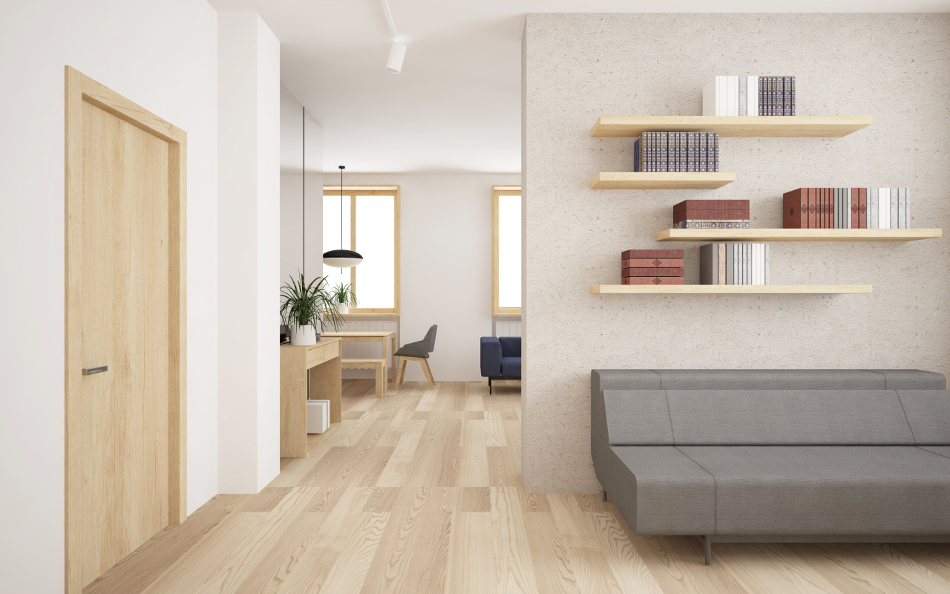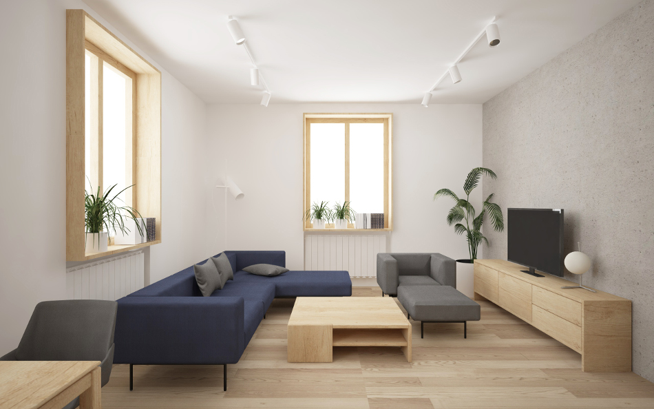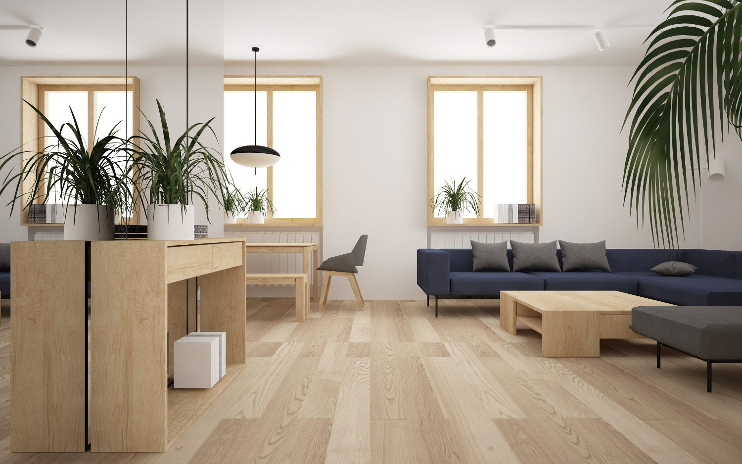 In this case, the client wanted to have space in the apartment for all the plants he grows. Framed windows are created with the intention of providing as much direct sunlight as possible for the plants. Natural materials were also one of the requirements when designing and selecting furniture, as well as interior elements.