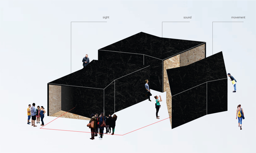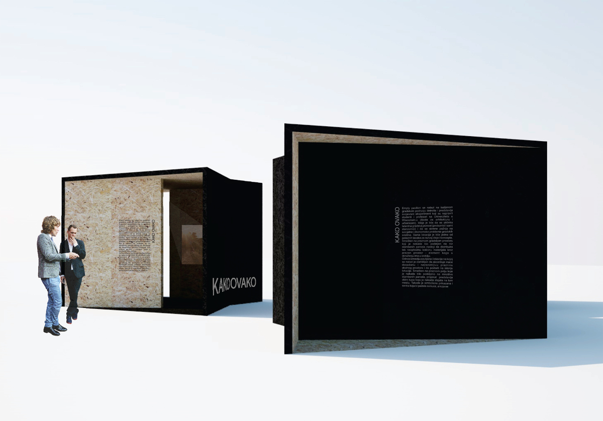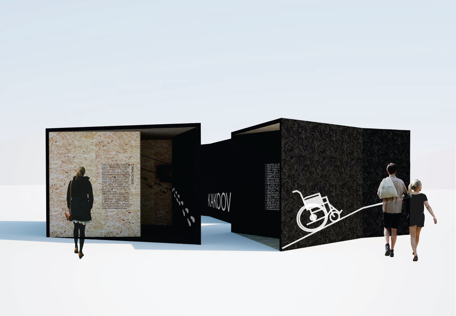 In collaboration with BosiFest and Koloseum disability organization, pavilions have been devised whose purpose is raising the fellow citizens' awareness about problems that disabled persons encounter. The pavilions are of the same size and each deals with a different problem – sound, sight and movement. By going through the pavilions, the visitors encounter and learn about the problems via photos, sounds, films and interactive segments. Each object is planned both individually and as a part of the whole together with the other two, depending on the possibilities of their placement in the city. The idea is to provide information, start a discussion and find a solution.