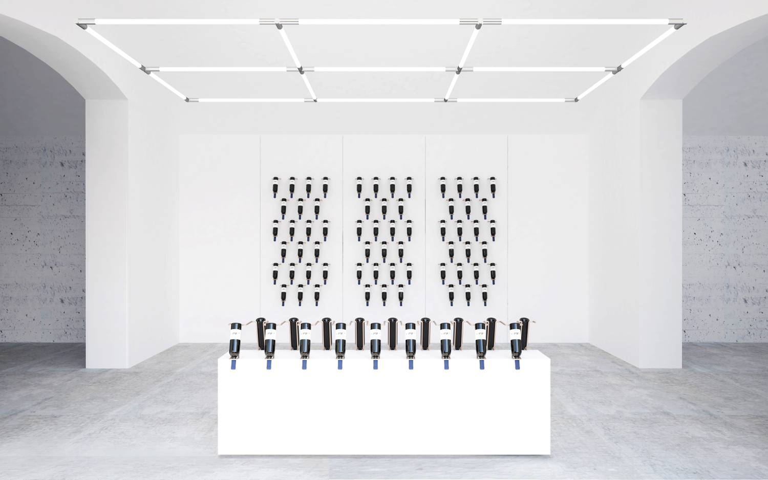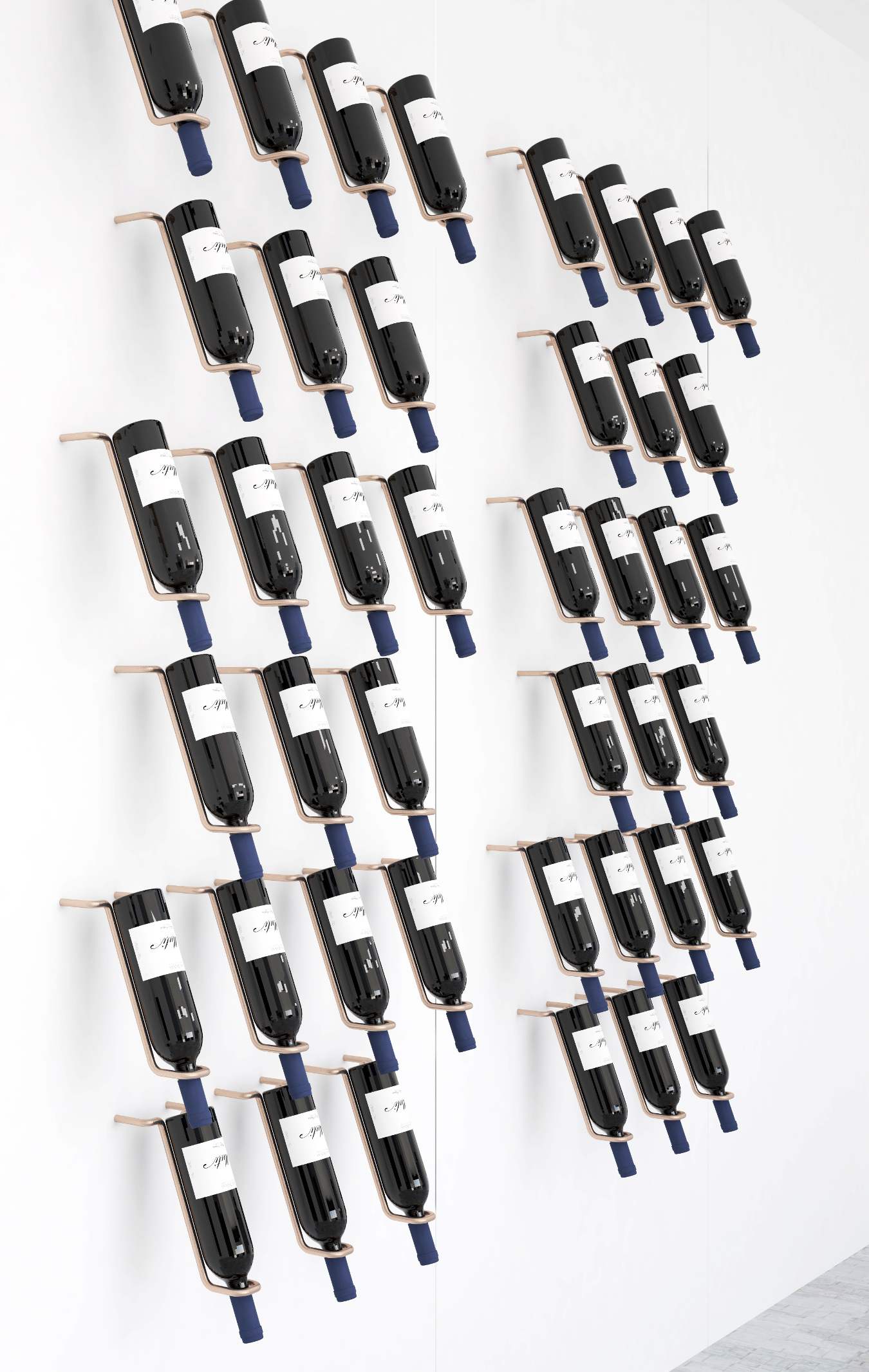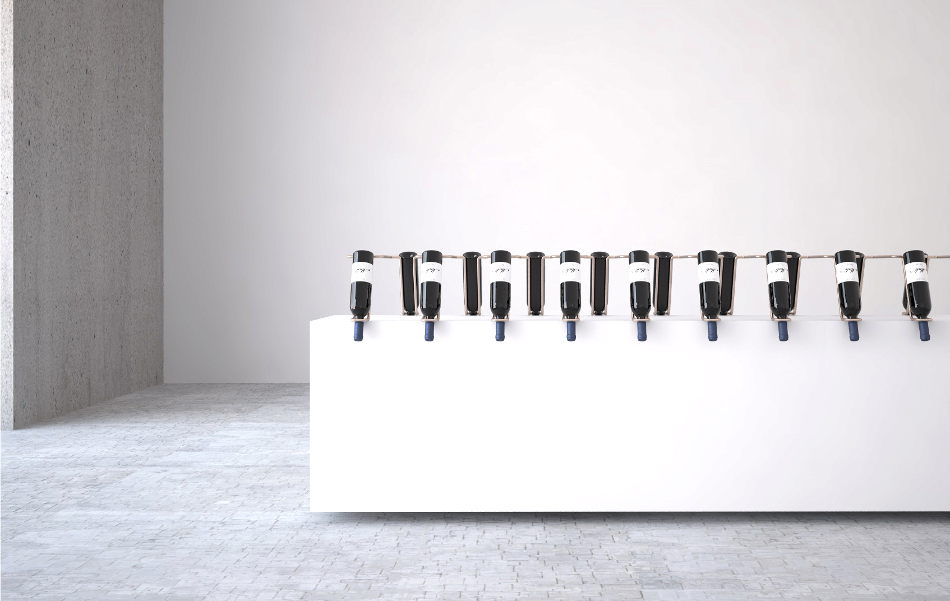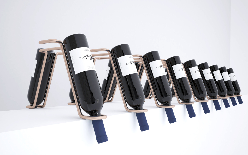 Multiplikacijom i ritmičnim ponavljanjem jednog elementa formiran je niz. Pravilan način čuvanja vina, određeni ugao koji treba boca da zauzme, kao i zahtev da čep uvek bude natopljen vinom odredili su oblik i dimenzije elementa. Dobijeni niz može beskonačno da se nastavlja i prekida po potrebi, što ga čini prilagodljivim različitim prostorima. Pristupačnost sa obe strane takođe doprinosi boljoj funkcionalnosti. Ima mogućnost postavljanja na vertikalnu površinu, u slučaju da je transtarentna, koristila bi se takođe sa obe strane, a ukoliko nije, samo sa jedne.